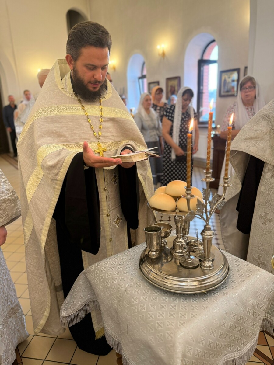 По окончании Богослужения состоялось освящение плодов нового урожая и общая трапеза.